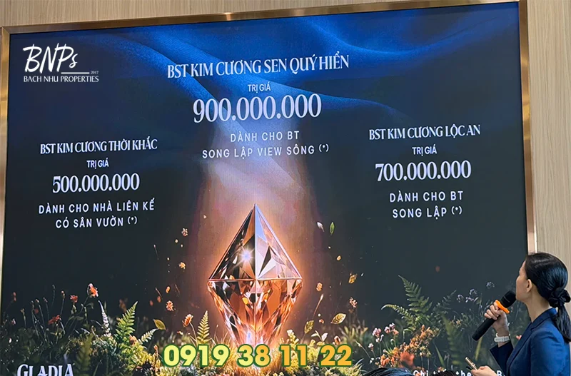 - Dành cho Biệt thự Song lập: Tặng Bộ sưu tập Kim cương Lộc An trị giá 700.000.000 VNĐ.