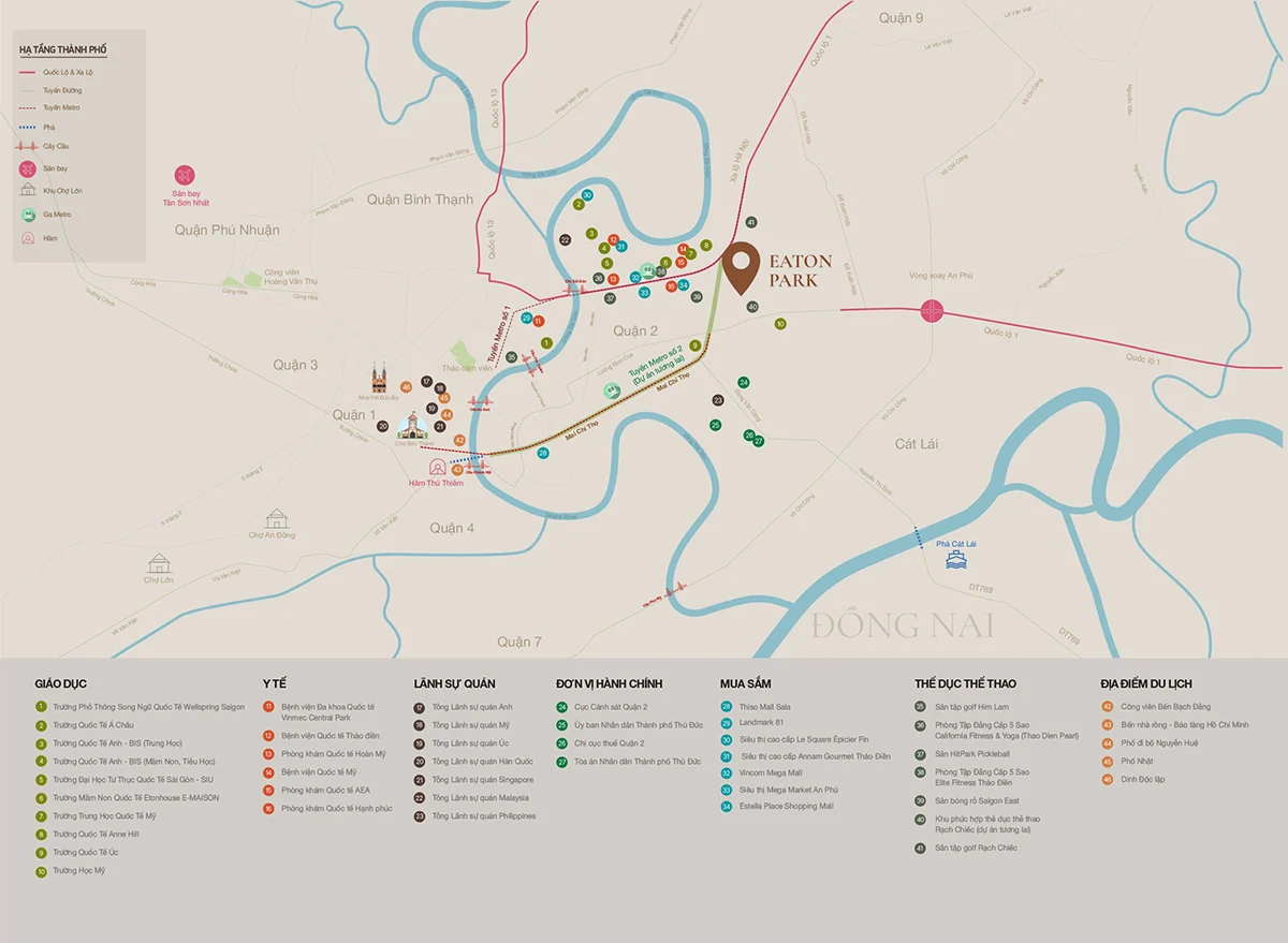 Nằm tại vị trí trung tâm, Eaton Park Thủ Đức dễ dàng kết nối và thừa hưởng toàn bộ hệ sinh thái dịch vụ cao cấp trong khu vực: