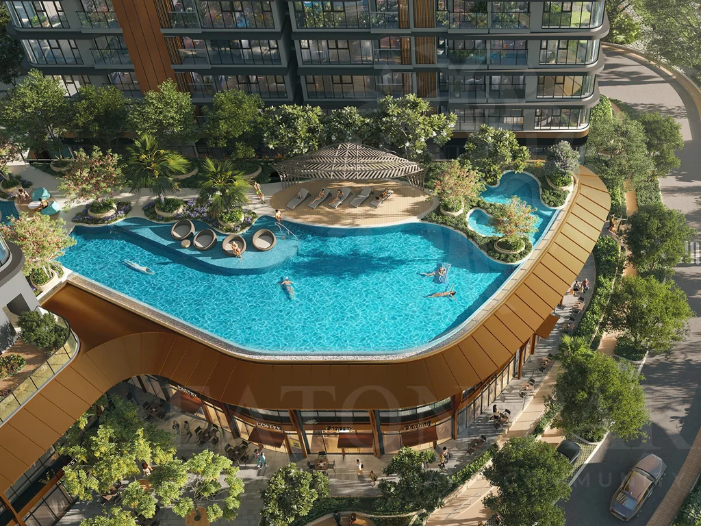 Hệ thống hồ bơi: Bao gồm hồ bơi tràn bờ dài 50m với tầm nhìn toàn cảnh thành phố, cùng hồ bơi riêng dành cho trẻ em, giúp cả gia đình thư giãn và giải trí.
