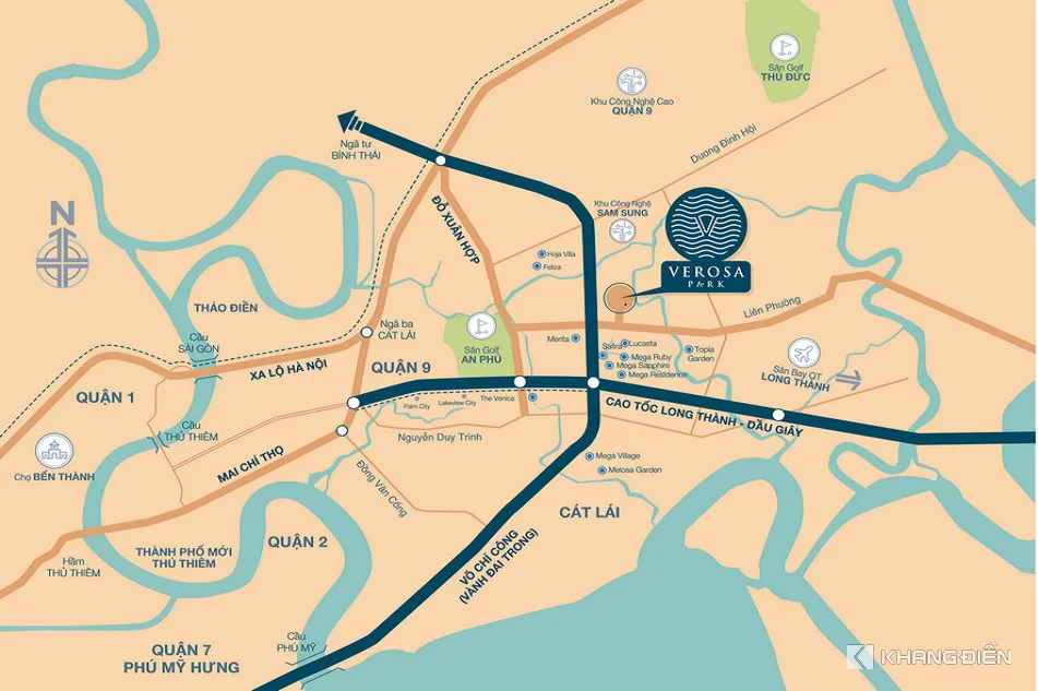 Verosa Park sở hữu vị trí chiến lược, giúp cư dân dễ dàng di chuyển đến trung tâm thành phố và các khu đô thị phía Đông Sài Gòn, đồng thời duy trì không gian sống yên bình, tách biệt khỏi sự ồn ào.
