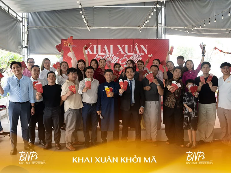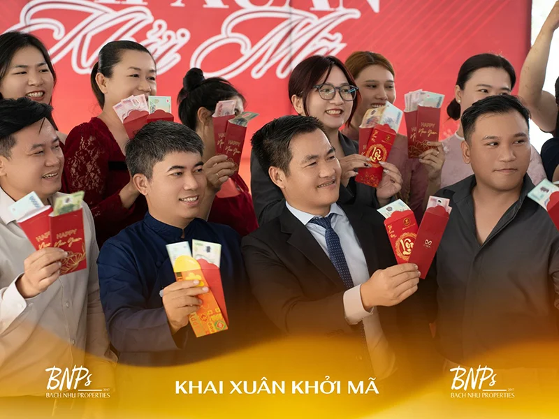 Tại buổi lễ, Ban lãnh đạo công ty đã trao những phong bao lì lộc may mắn đến từng thành viên trong đại gia đình BNPs. Những nụ cười rạng rỡ cùng những cái bắt tay siết chặt thể hiện sự đồng lòng, nhất trí cao độ để đưa thương hiệu Bách Như Properties chinh phục những đỉnh cao mới trong năm 2026.