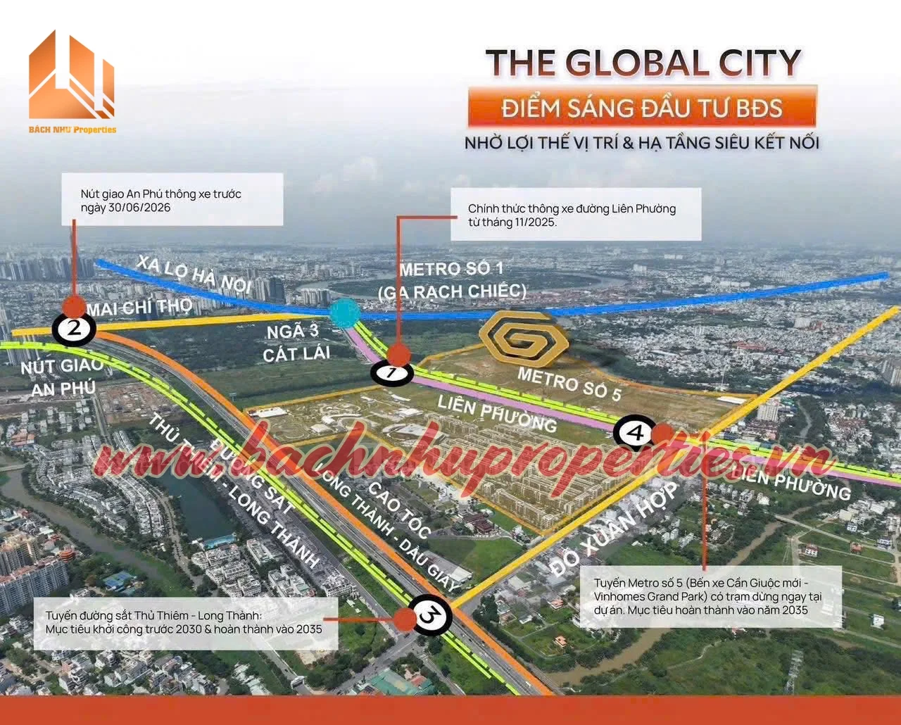 - Mất chỉ 5–10 phút từ Thảo Điền/An Phú/Thủ Thiêm → The Global City