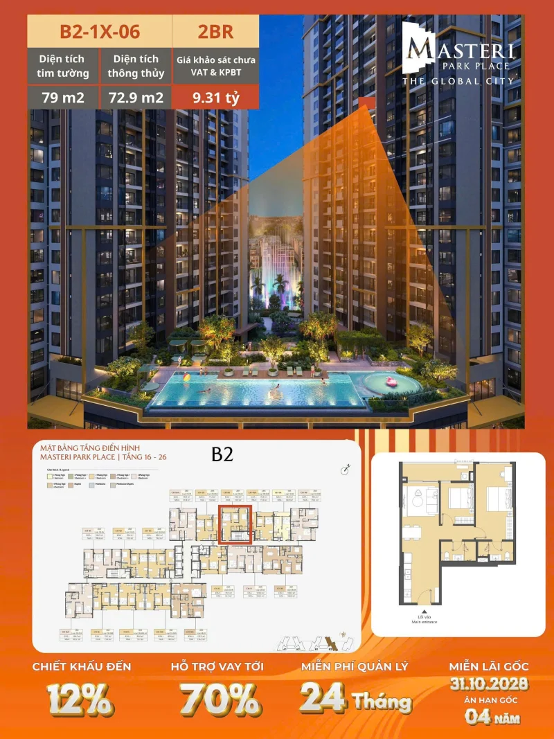 Ưu đãi Hấp dẫn – Cơ hội sở hữu căn hộ Masteri Park Place tầng 16-26 tòa B2